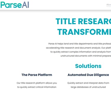 Parse Al brings innovation and speed to real property transactions by leveraging machine learning (ML) and optical character recognition (OCR) to assist with title research. This platform can rapidly extract critical information from a large collection of title documents to allow title researchers to complete abstracts and reports faster and more accurately.